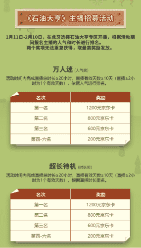 除了“油王”争霸赛,,精英主播招募活动亦同步开启!!!!赛事分时长奖和人气奖,,奖励同样丰厚!!!